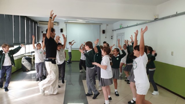 El pasado 1° de octubre visitó nuestra escuela Angelo D’Agosta, actor, director y dramaturgo italiano quien realizó una clase sobre técnicas de teatro con los alumnos de 4° y 5° Grado. Fue una experiencia enriquecedora para los alumnos quienes participaron con mucho entusiasmo y alegría.