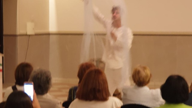Por la tarde presentó el unipersonal “Ulisse all’Inferno” , escrito, dirigido y actuado por él.