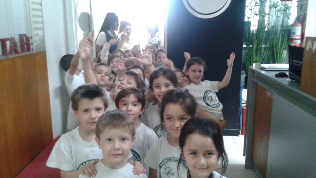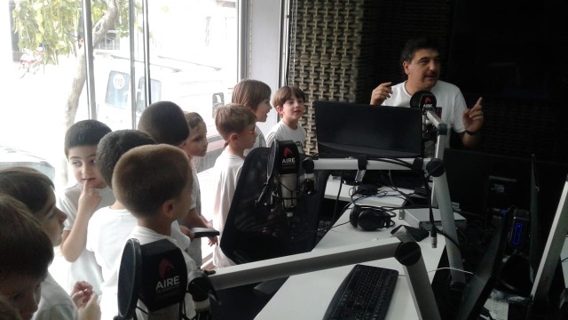 En el marco del desarrollo de contenidos Medios de Comunicación, los alumnos de Sala de 5 Años Turno Tarde visitaron la radio «Aire de Santa Fe». Los niños contestaron varias preguntas de los conductores y cantaron canciones.